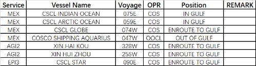 中东地区局势更新的服务提示 尊敬的客户: 鉴于当前中东地区安全形势的持续演变,以及霍尔木兹海峡海上交通所面临的限制,中远海运集运正密切关注该地区的局势发展,并与相关当局及安全机构保持紧密沟通,我们始终将船员、船舶及您的货物安全置于首位。 为确保所有运营的安全性,我们针对现阶段船舶和货物的情况做如下提示: 1、已进入波斯湾内的船舶,在安全的前提下,完成原定港口靠泊和作业后,在安全水域滞航或锚泊。 2、前往波斯湾方向的船舶,我们已通知相关船舶注意航行安全,采取或减速航行,或前往安全水域,或指定庇护锚地等待进一步通知。 3、相关船舶信息详见附表 4、我们正在评估所有在船货物后续处置方案(包括可能的替代卸货港),将严格遵循我们提单条款与条件中的相关规定。 我们会持续关注中东地区事态发展,并通过官方网站及客服渠道及时向您更新后续进展。感谢您在此特殊时期对中远海运的理解与一贯支持。 中远海运集运 2026年3月1日 附表:
